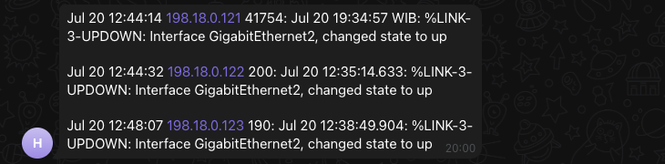 This is pretty basic and barebone you might think, but at least we managed to make it work first. After that, you can play around with other services to make this more robust and smarter, for example you can incomporate logrotate to automatically truncate the syslog messages as it is being sent over telegram, and run everything automatically every certain amount of time with cronjob.