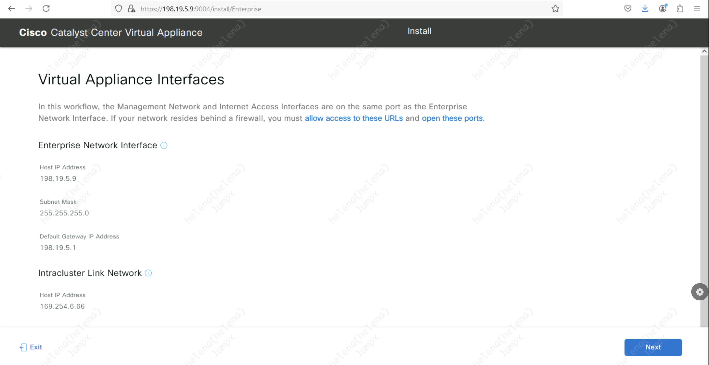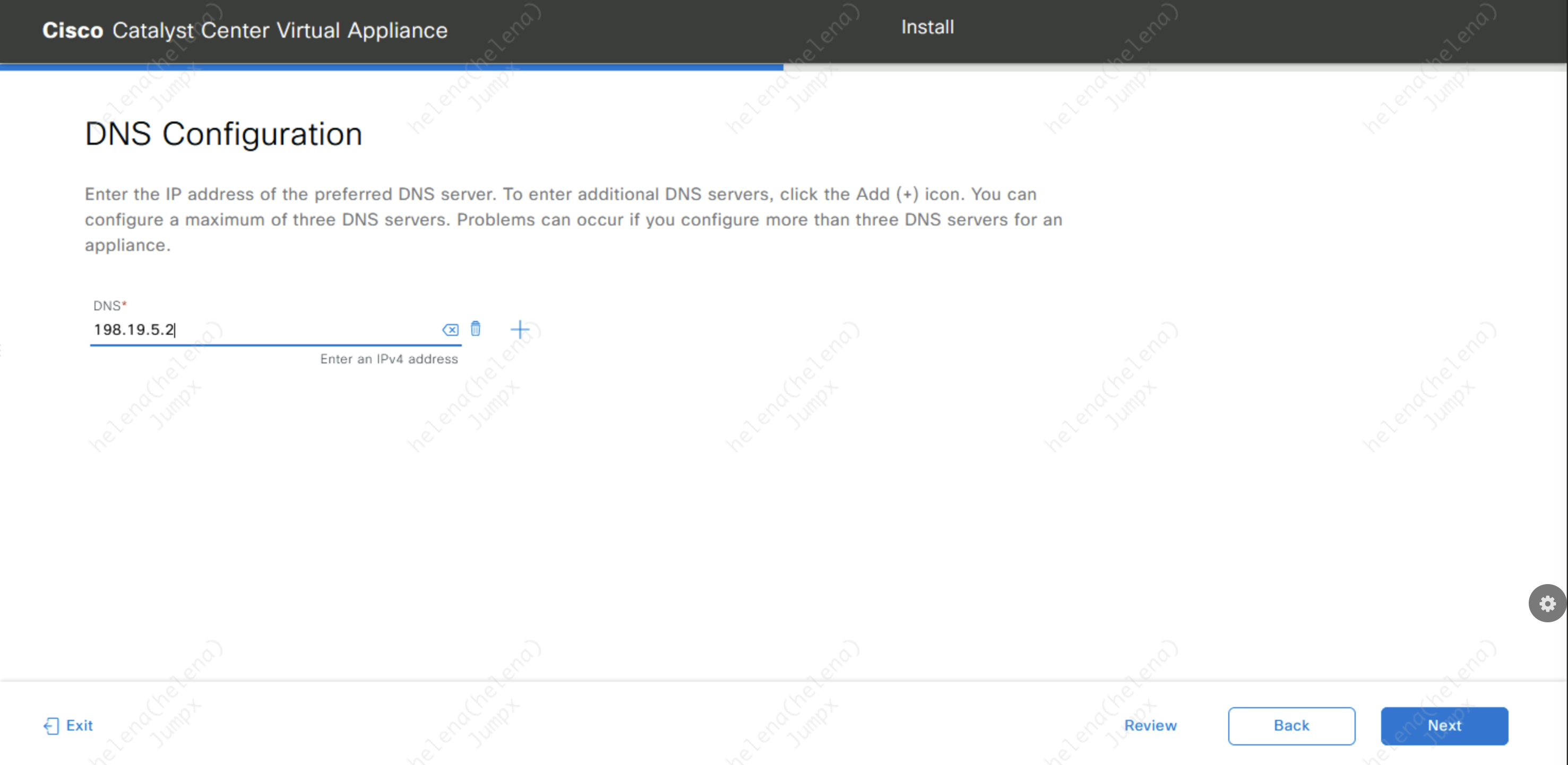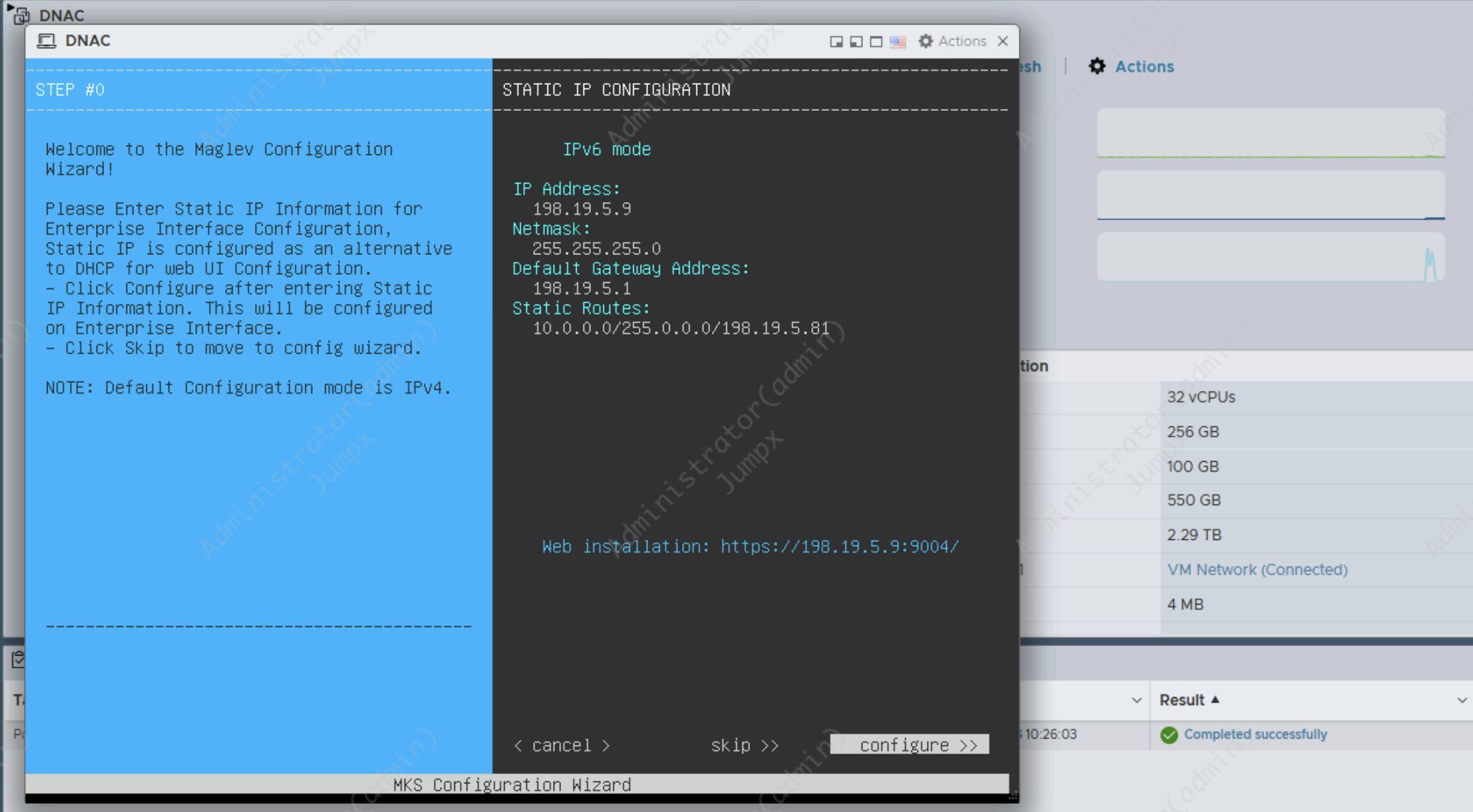 After booting it up, configure the IPv4, here we also configure for DNAC to access 10.0.0.0/8 subnet through the Core Switch