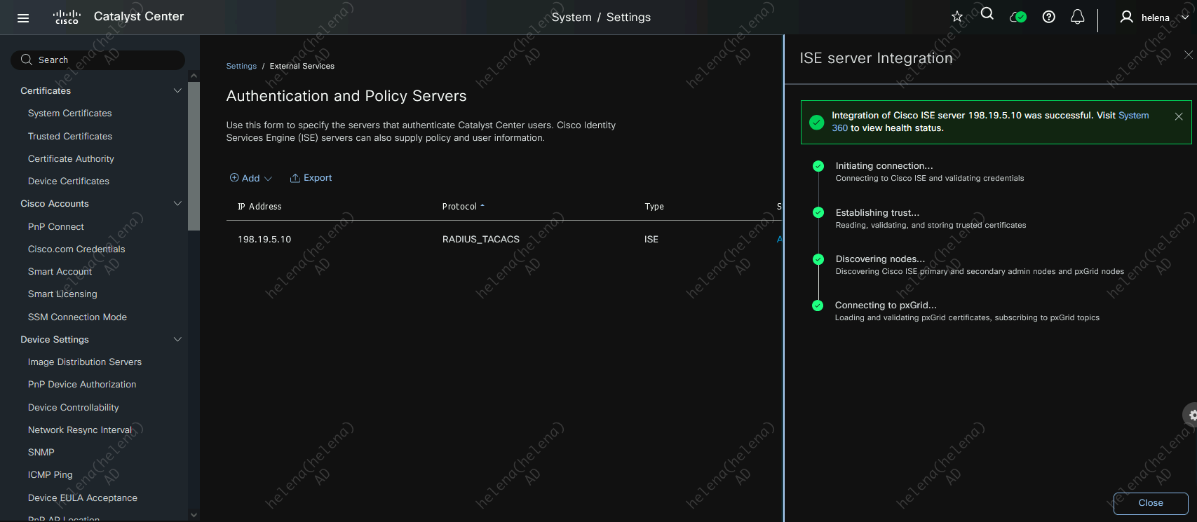 Back on DNAC, on System » System 360, hit configure on ISE Server