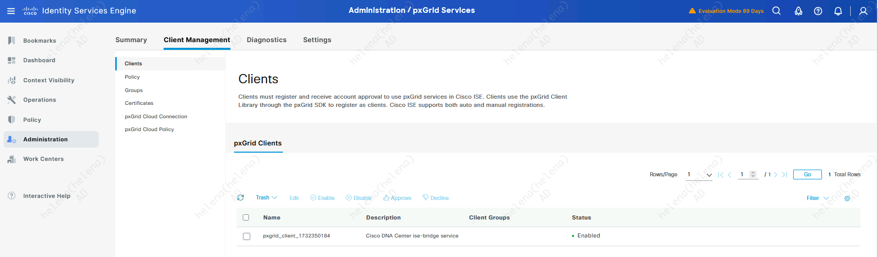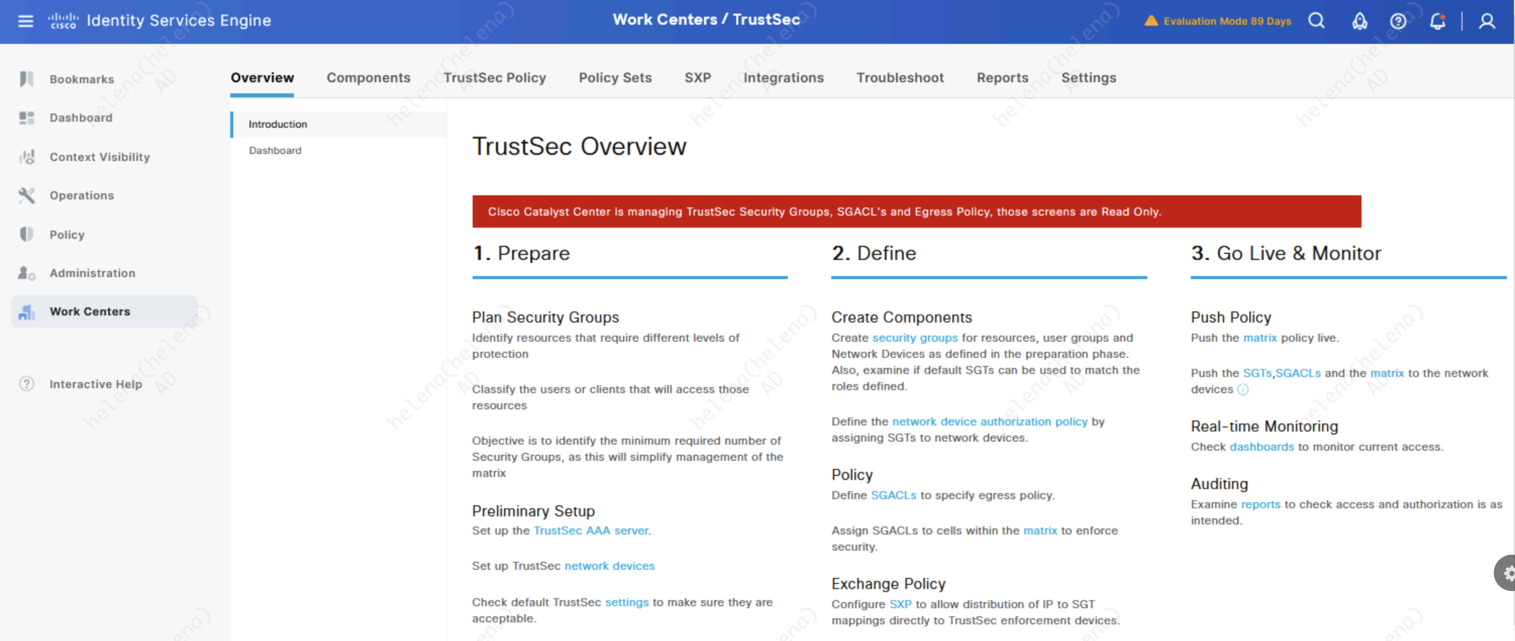 On the ISE side, a warning shows that notifies that TrustSec is now managed by DNAC
