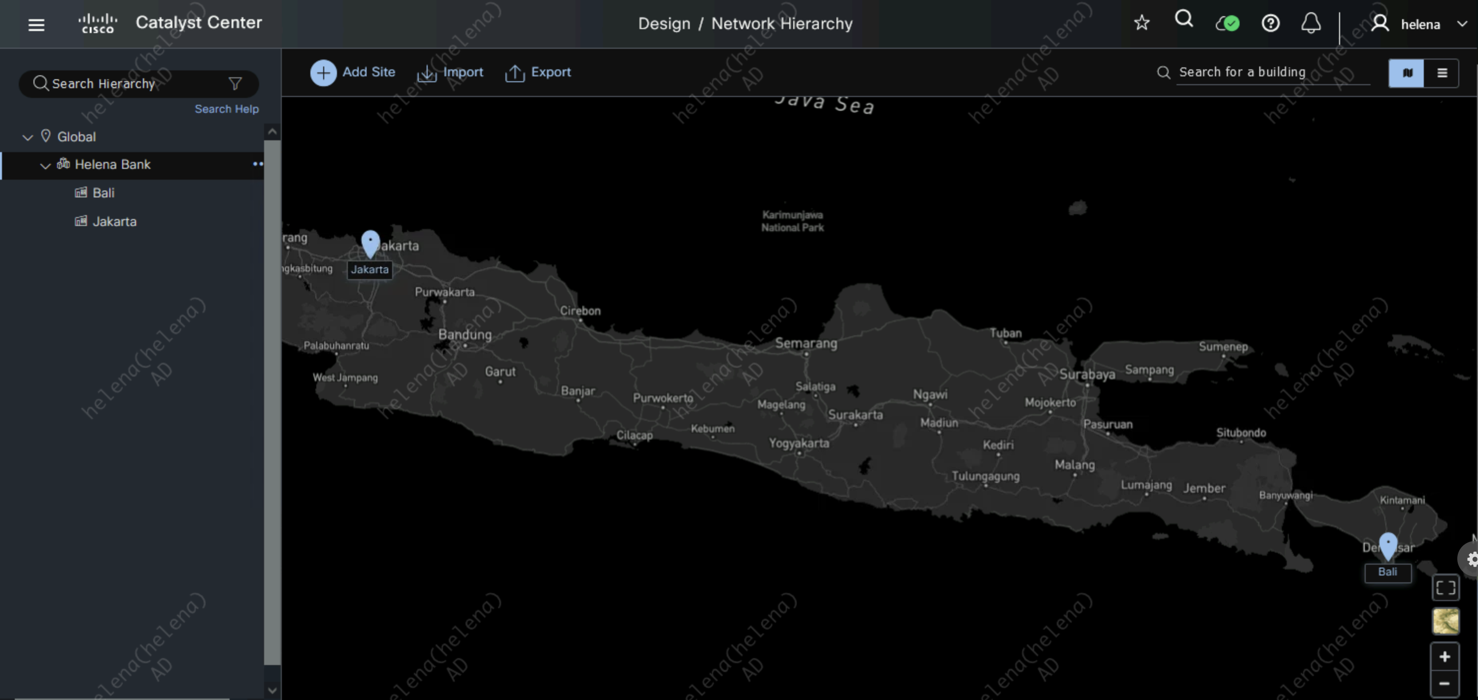 First lets create 2 sites, Jakarta and Bali on Design » Nettwork Hierarchy