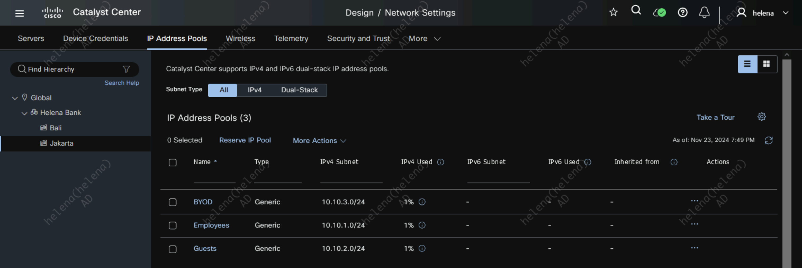 Now on Jakarta Site, here we create 3 IP Address Reserve Pools for this site