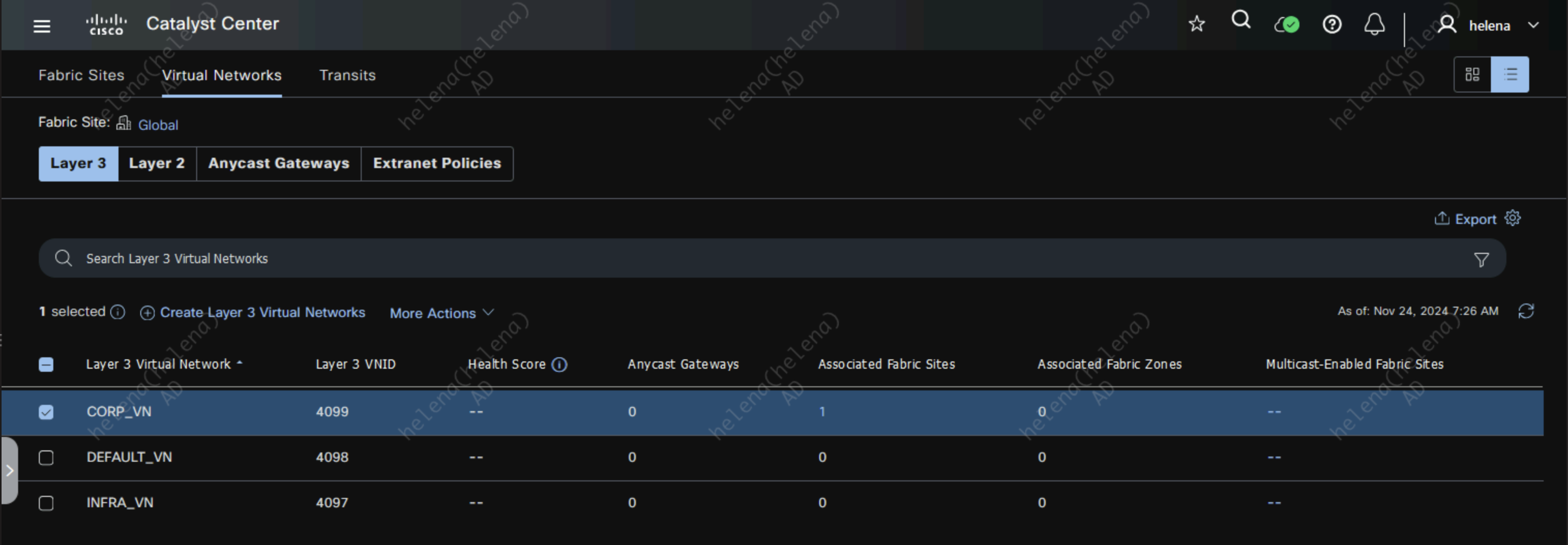 On Provision » Virtual Networks, lets create a Layer 3 Virtual Network (VRF)