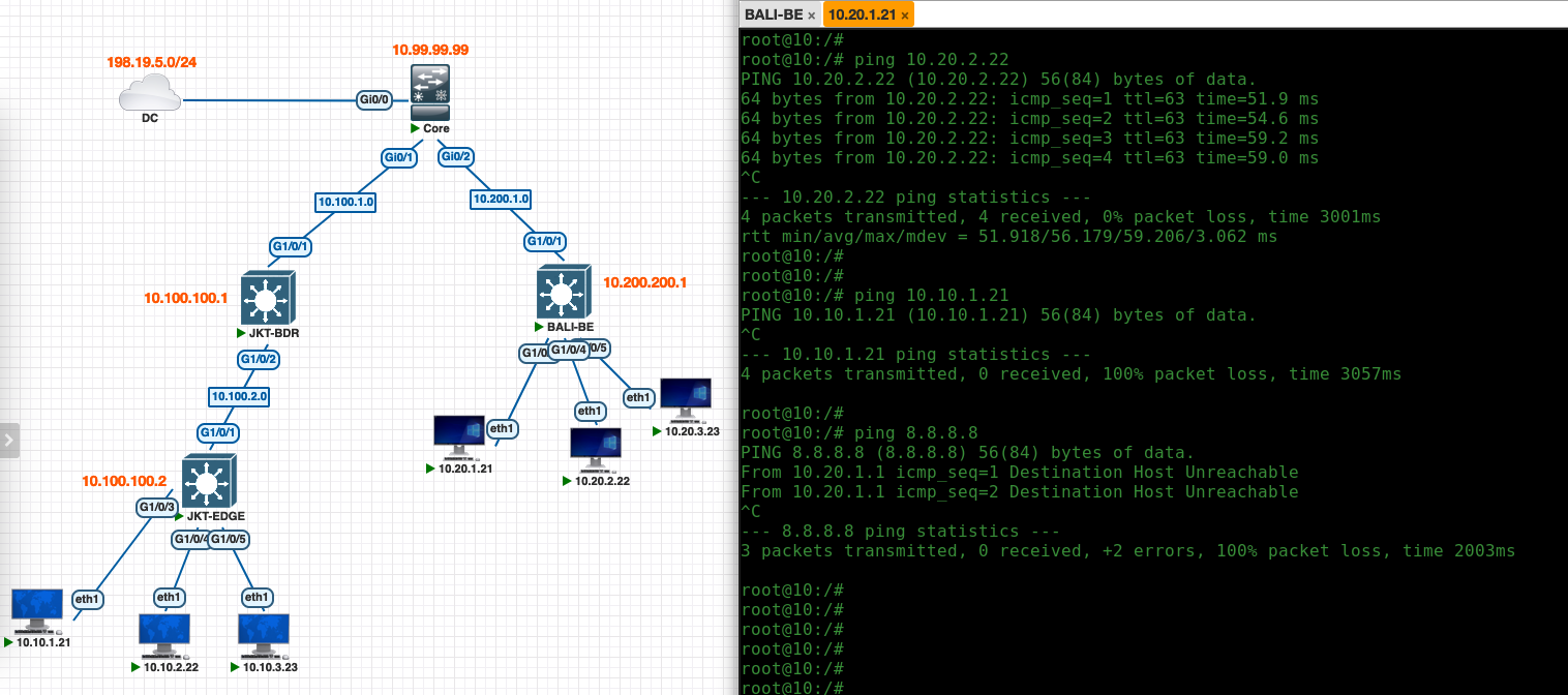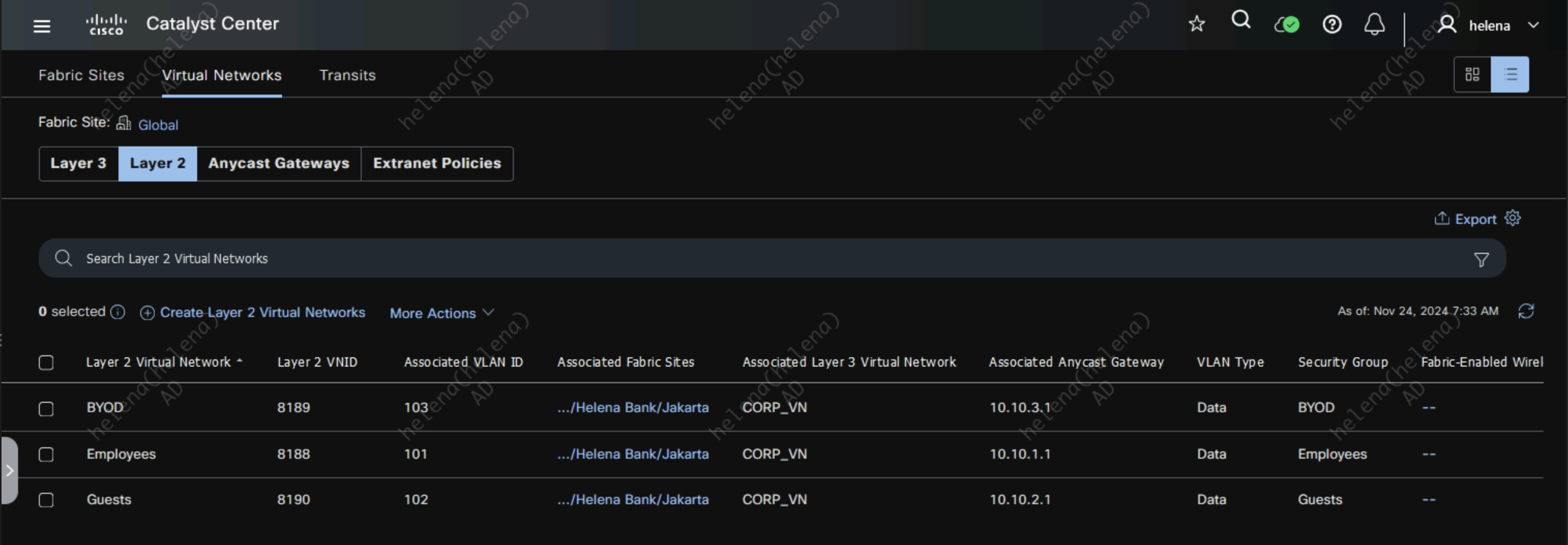 And now this second fabric is up and running, clients in this Bali Site can reach each other, but connectivity to other sites and to internet is still not available
