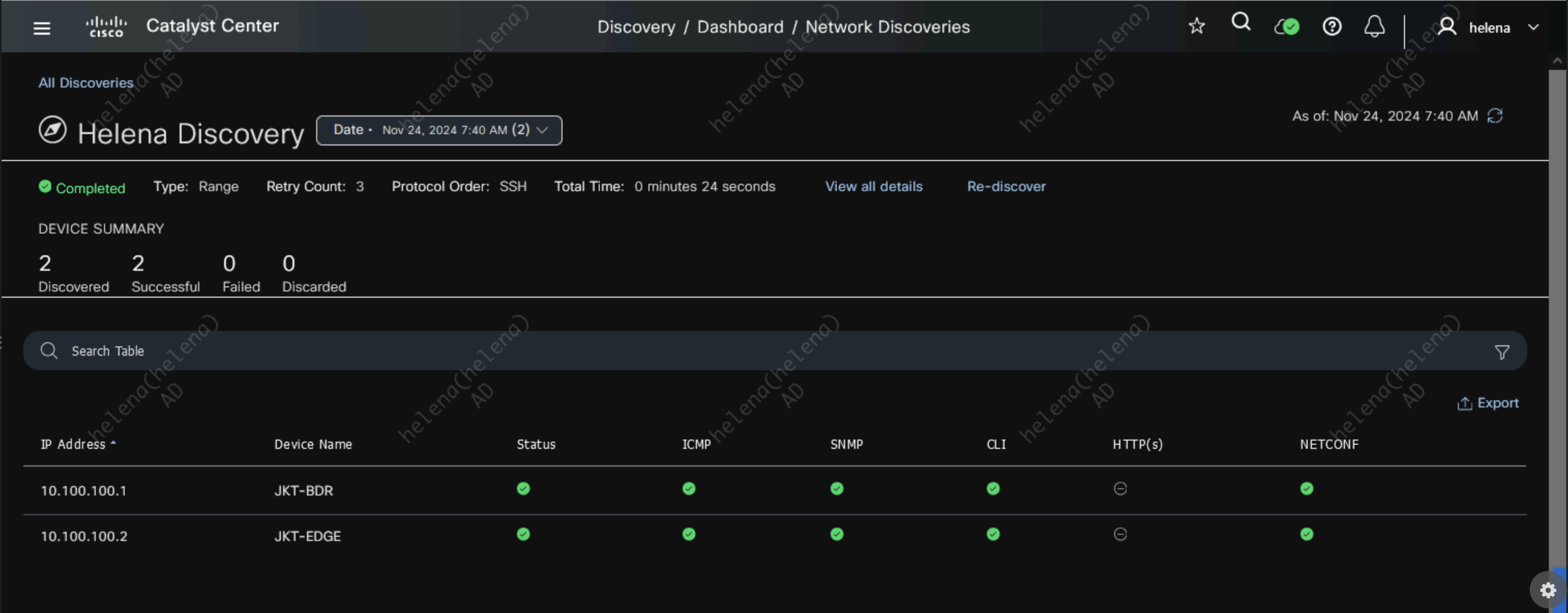 On Tools » Discovery, create a new Discovery Entry to discover 10.100.100.1 & 10.100.100.2