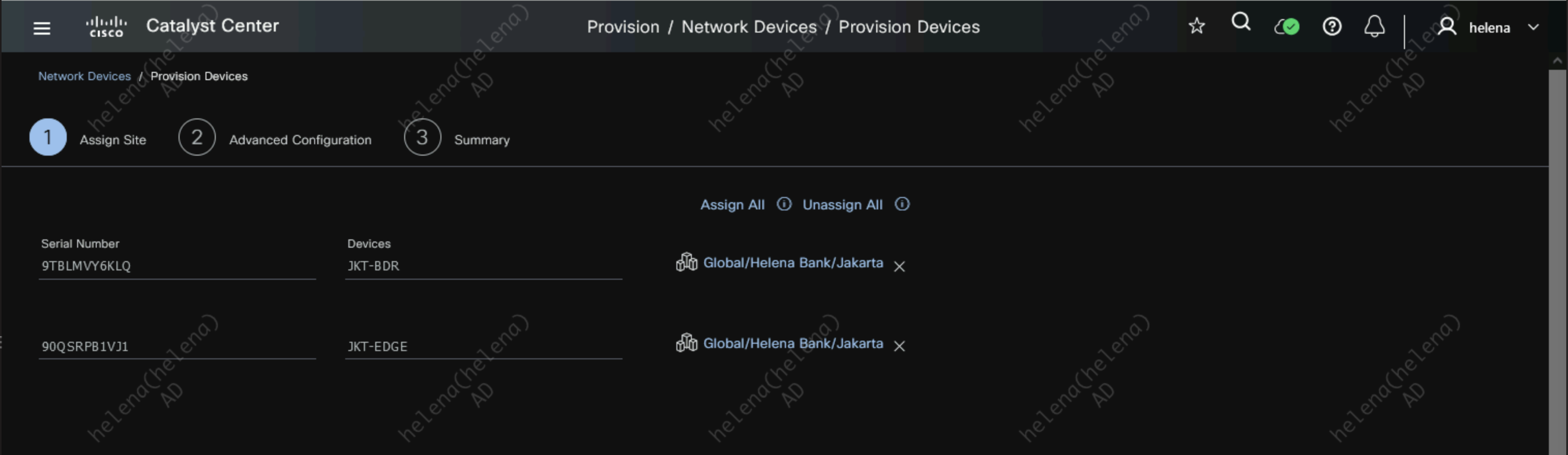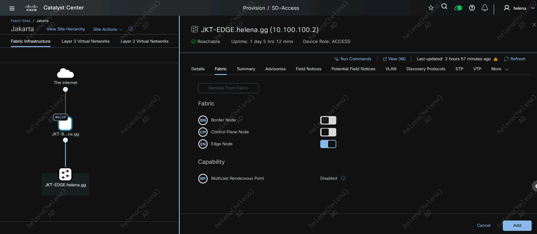 Now we can see that both devices are in the Jakarta site, but they still dont have roles in the SDA Fabric