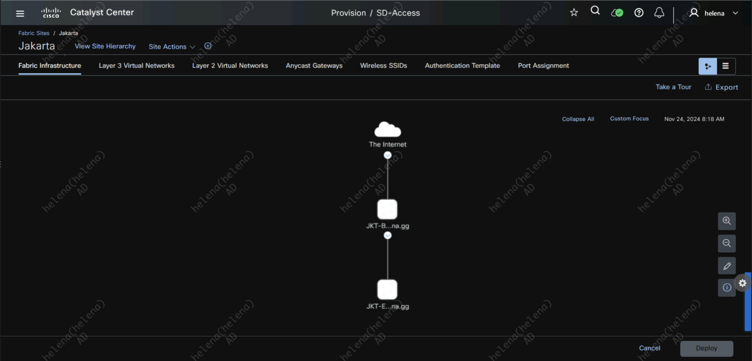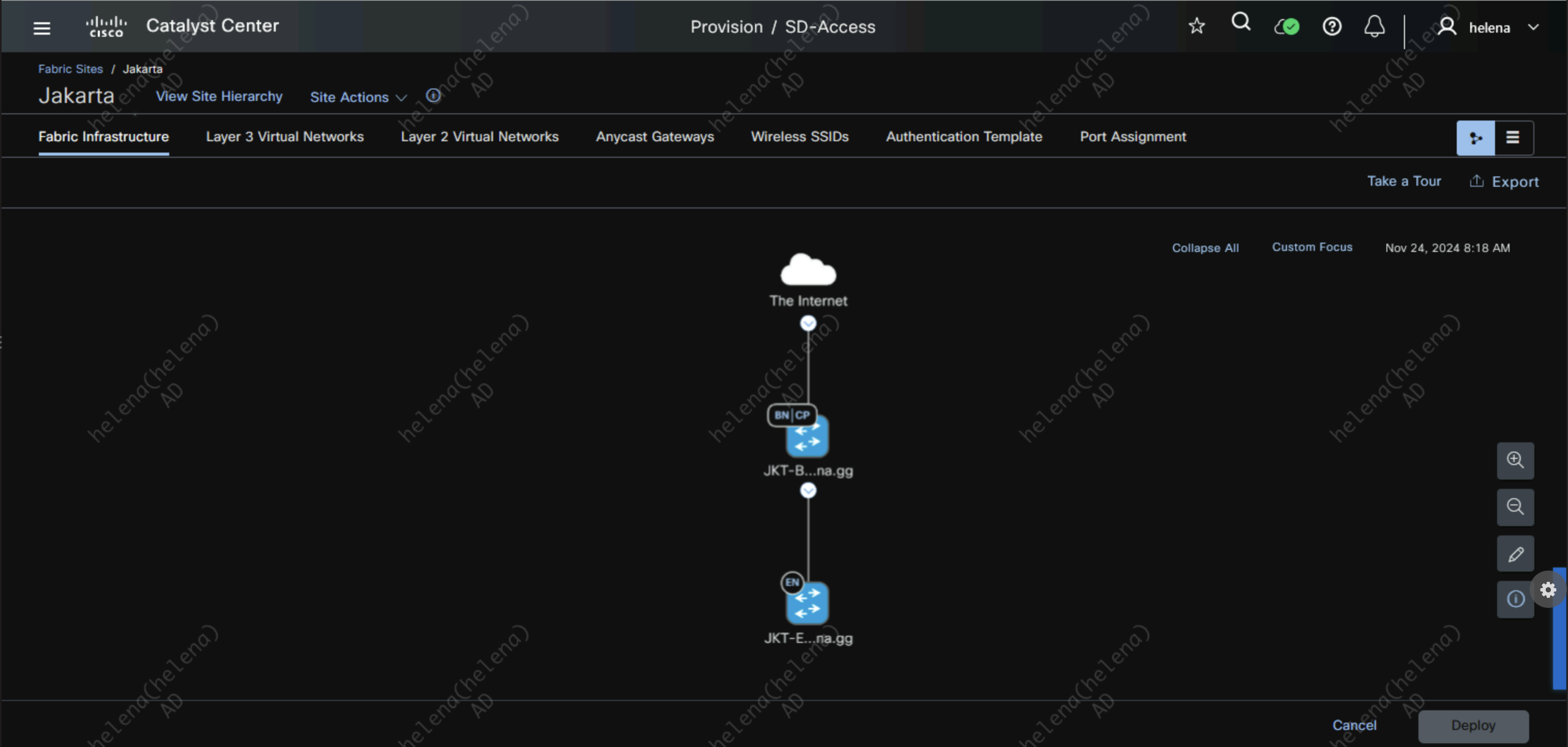 On Provision » Fabric Sites, hit create fabric on Jakarta Site