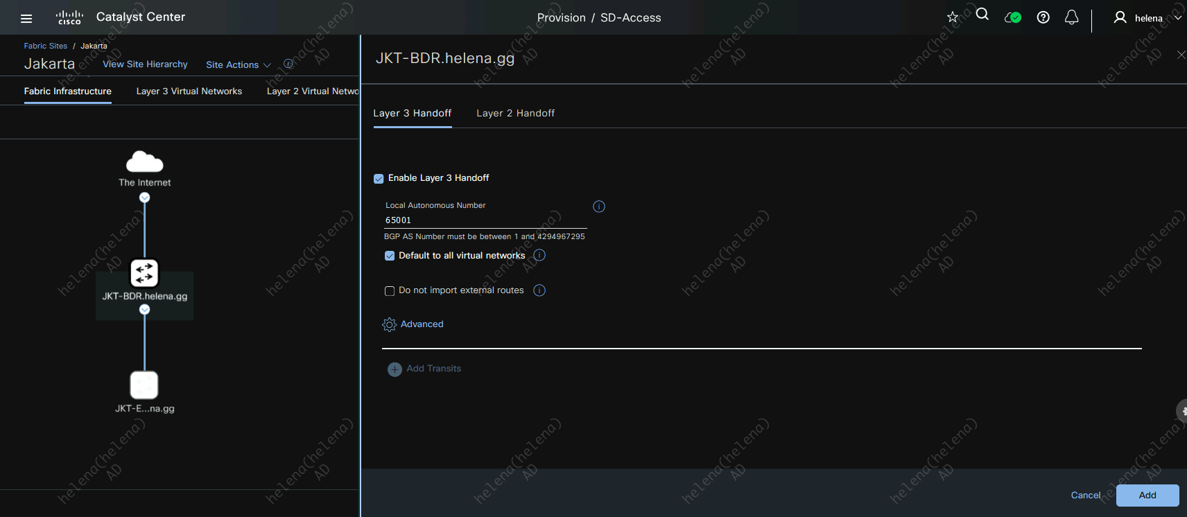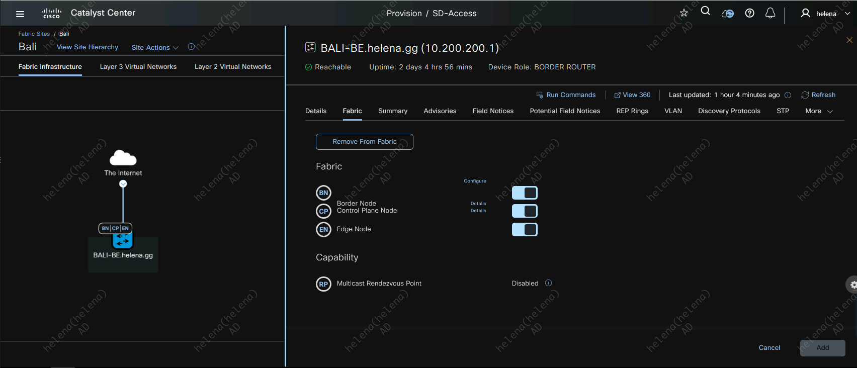 Lets add a new site named “Bali Site”, this site is a Fabric-In-a-Box because we only use one device as Border, Control Plane, and also Edge node
