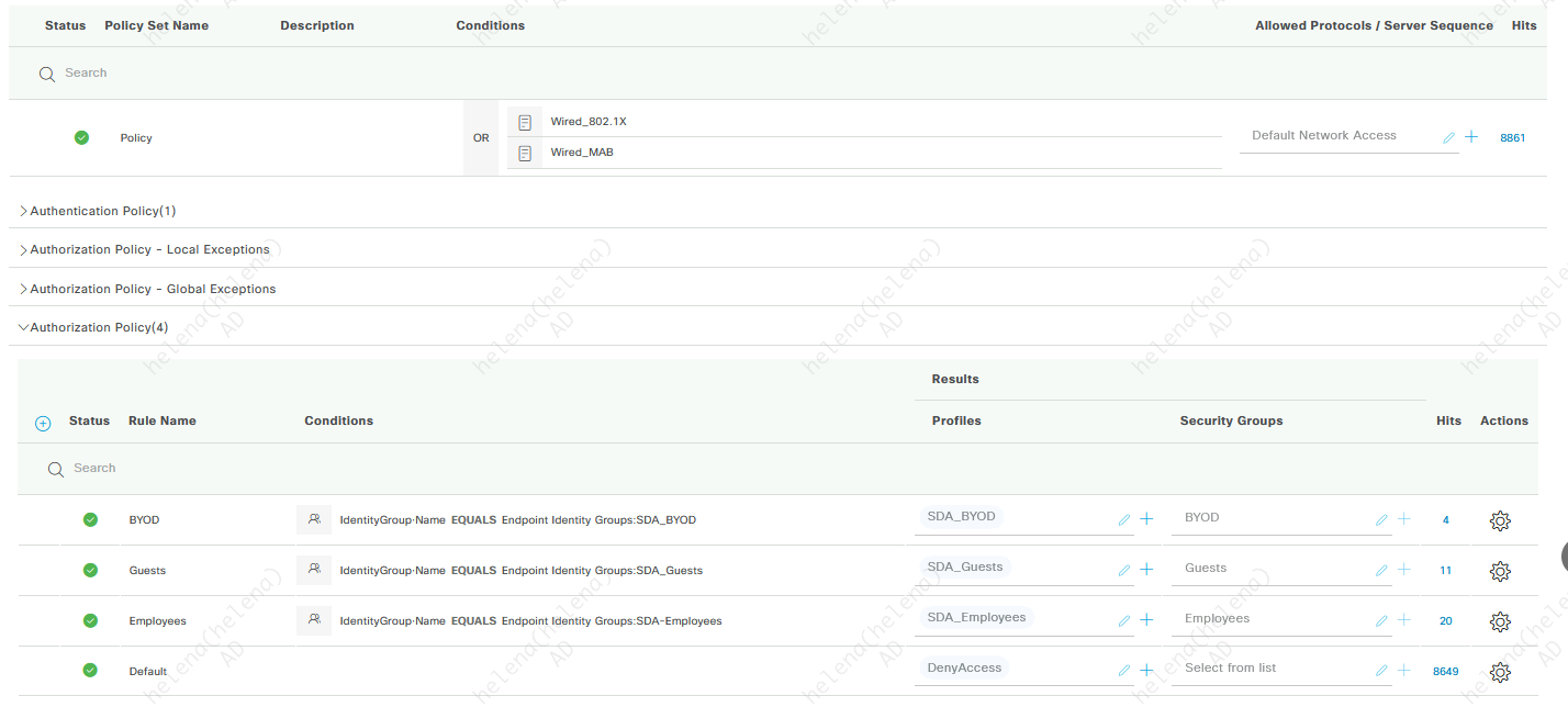 Where on ISE we have a Policy Set handing out VLANs and SGTs based on client’s mac address