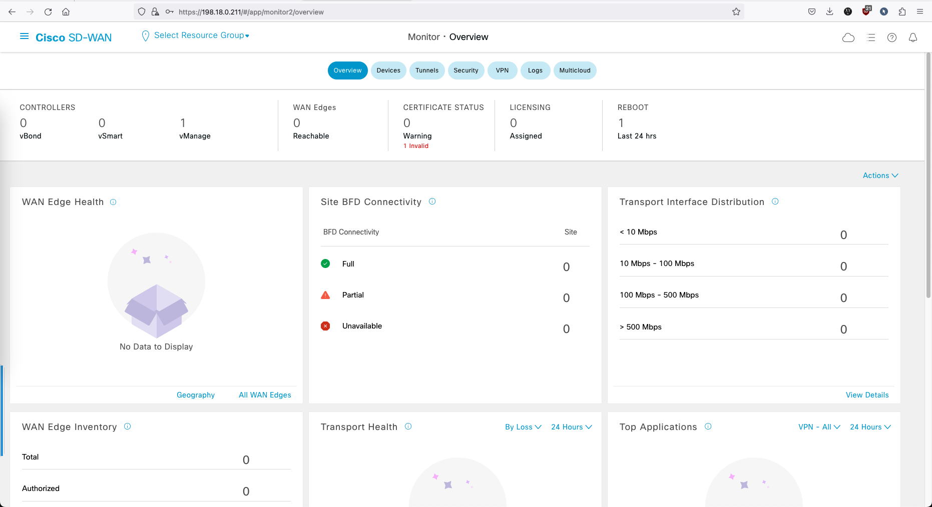 And on vManage Dashboard, we should see the vBond and vSmart are recognized