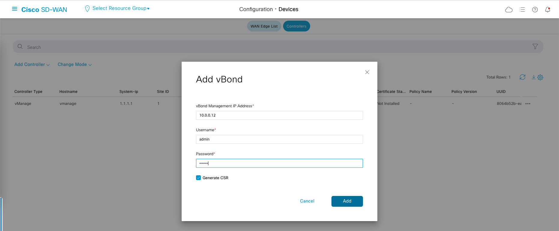 Adding Controllers to vManage