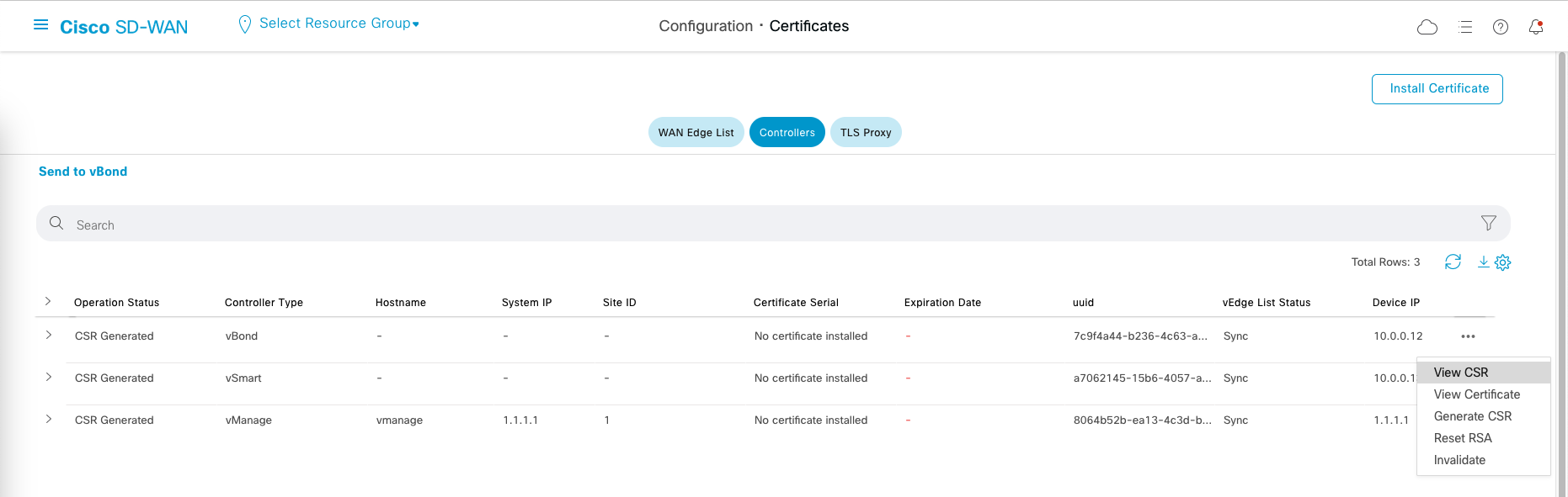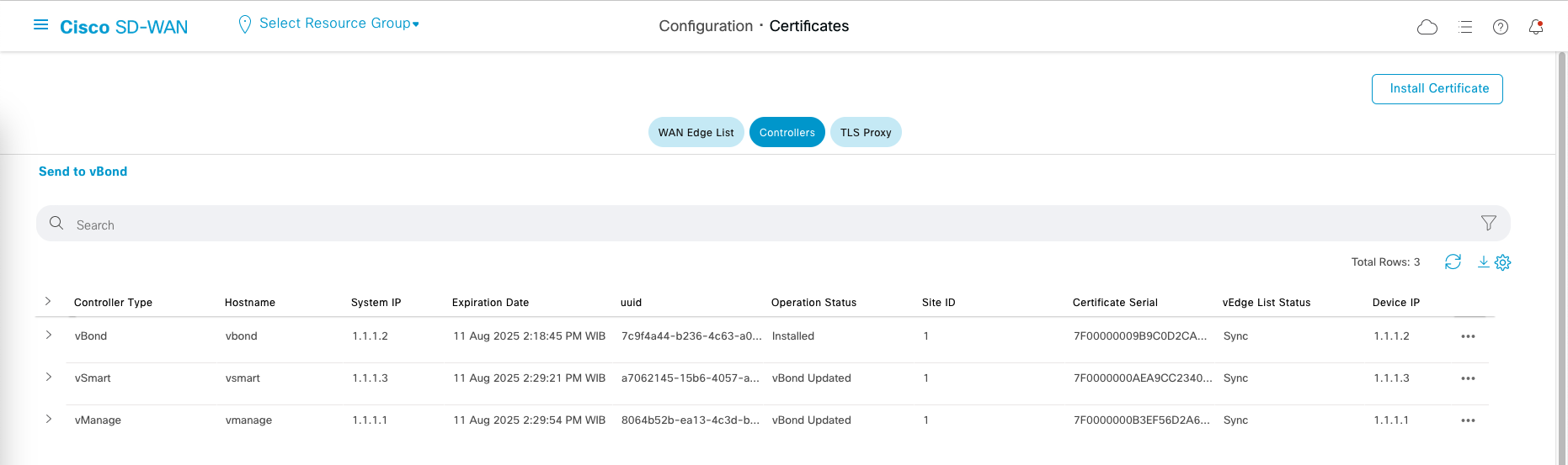 Go to Configuration » Certificates » Controllers,