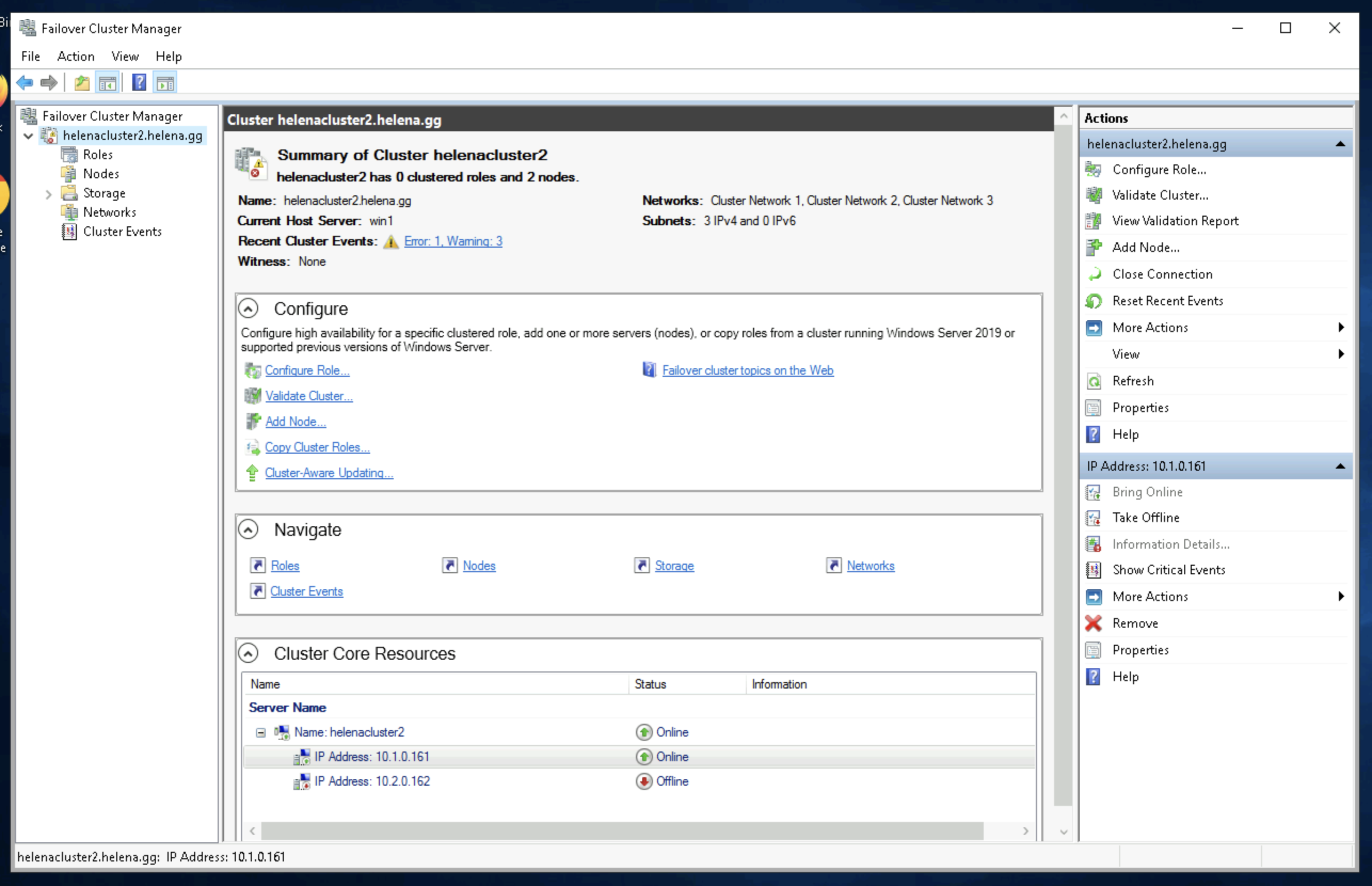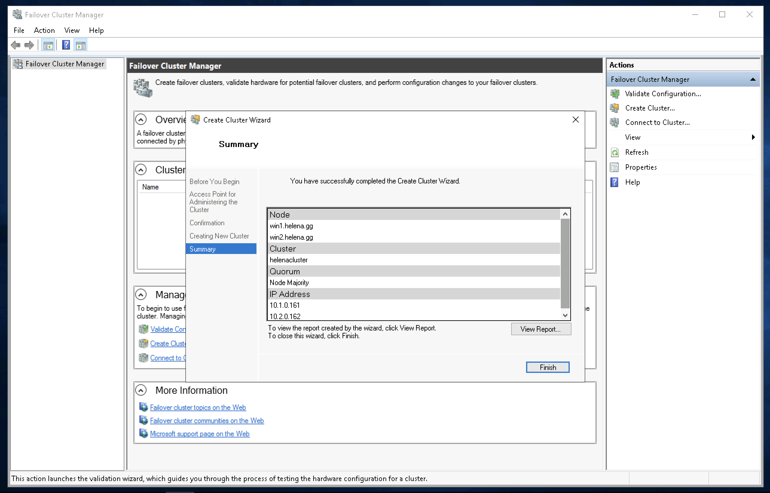 Now create the cluster name of “helenacluster2” and give each of them an IP Address