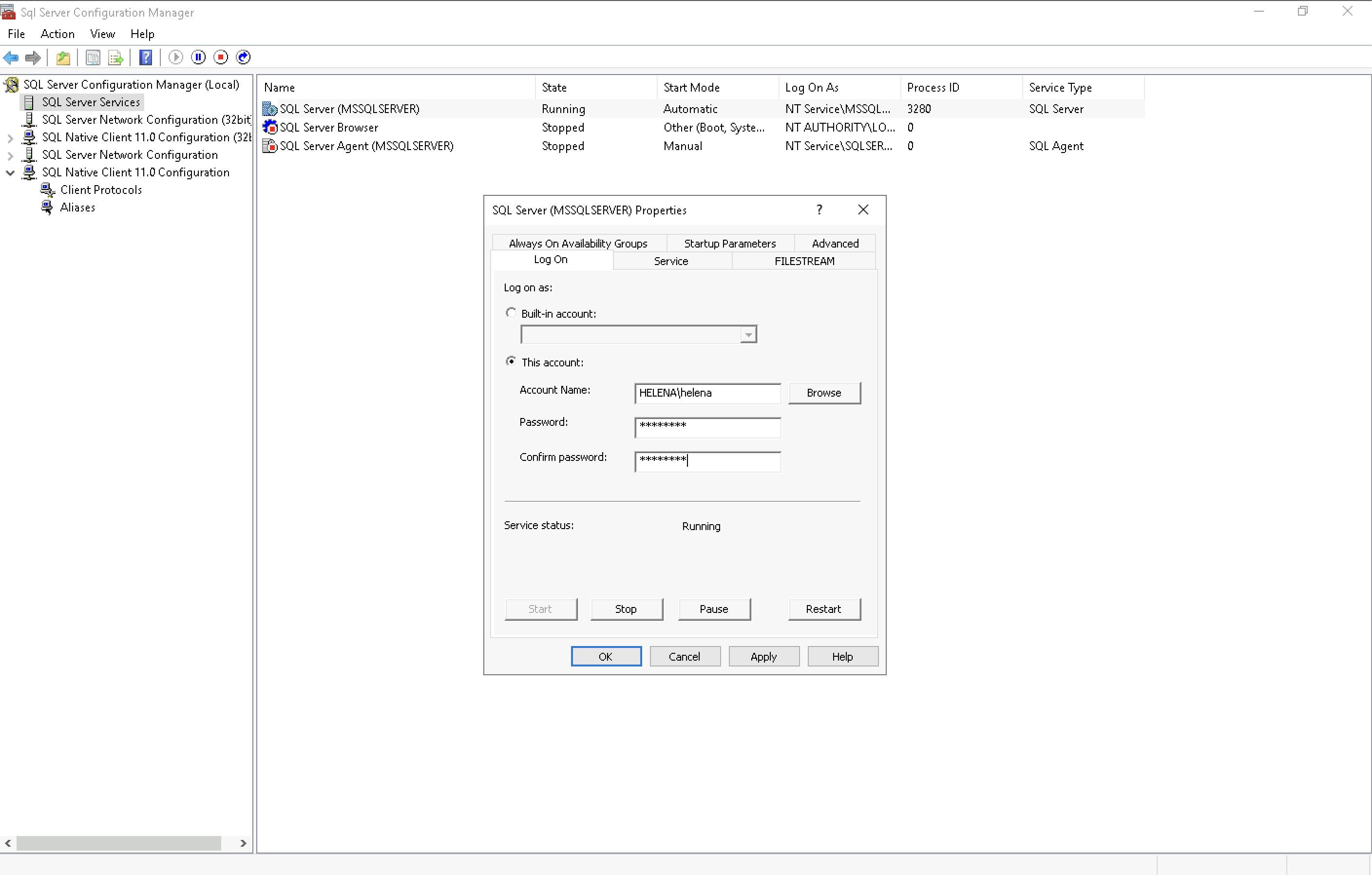 On SQL Server Configuration Manager, Open the SQL Server Service and change the user to the domain user