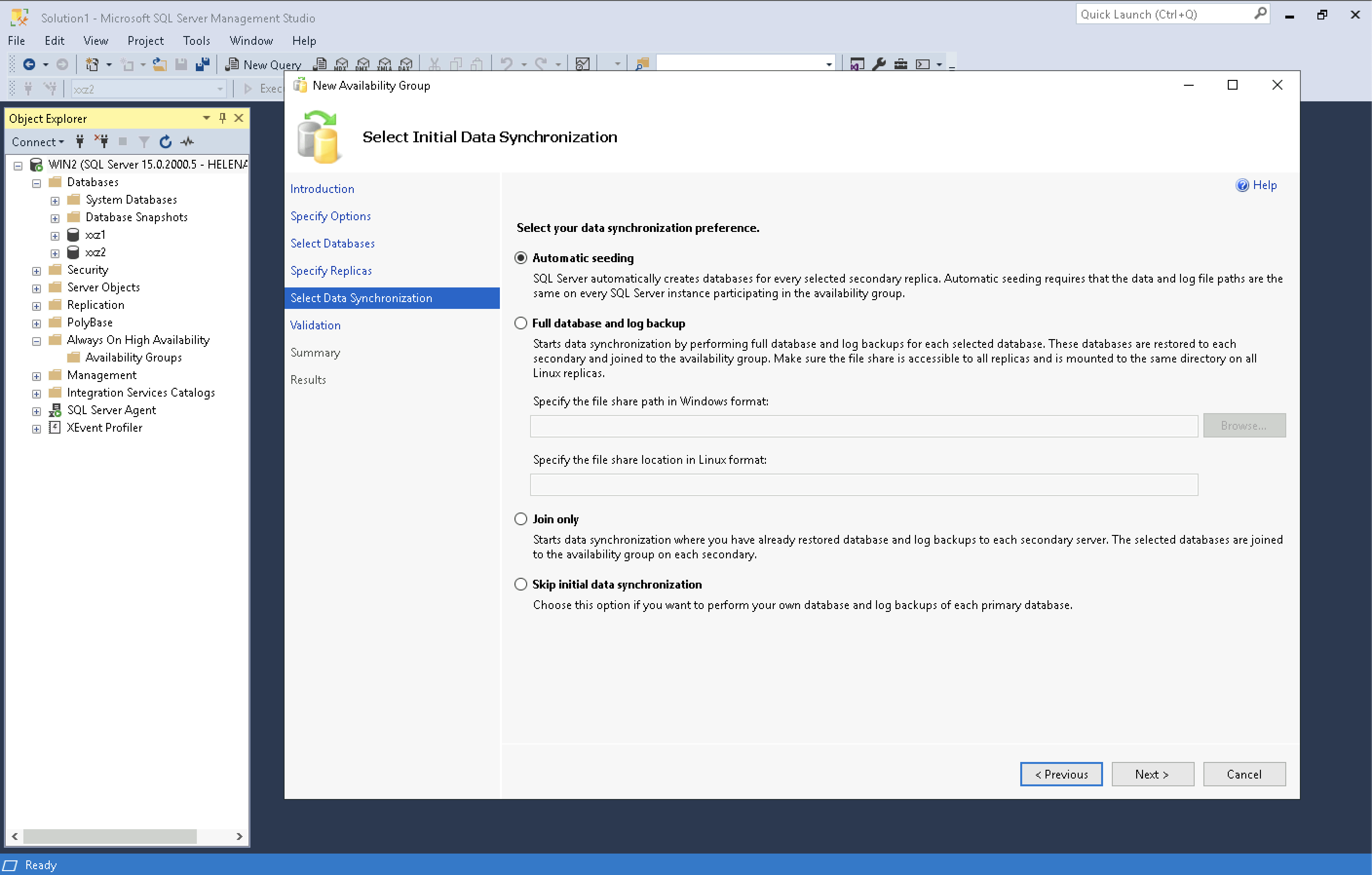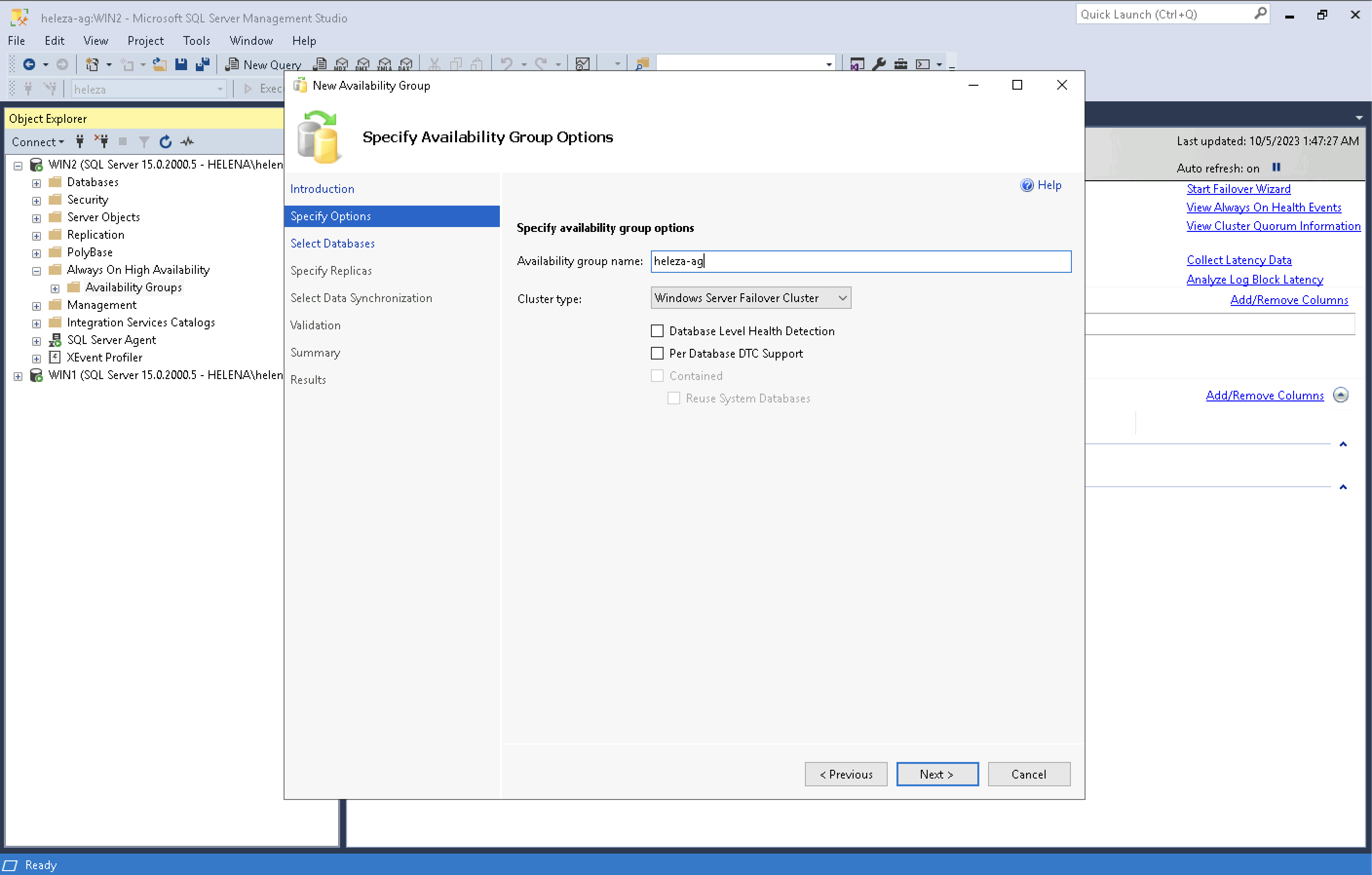 Now open SSMS, on Alway On Availabilty Groups, right click and add new