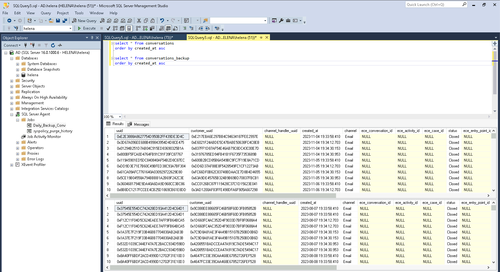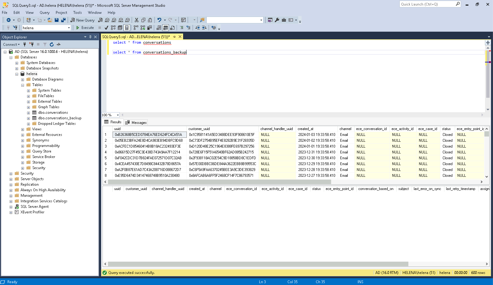 And checking on the tables, we can see the data has been successfully moved from the main table to the backup one