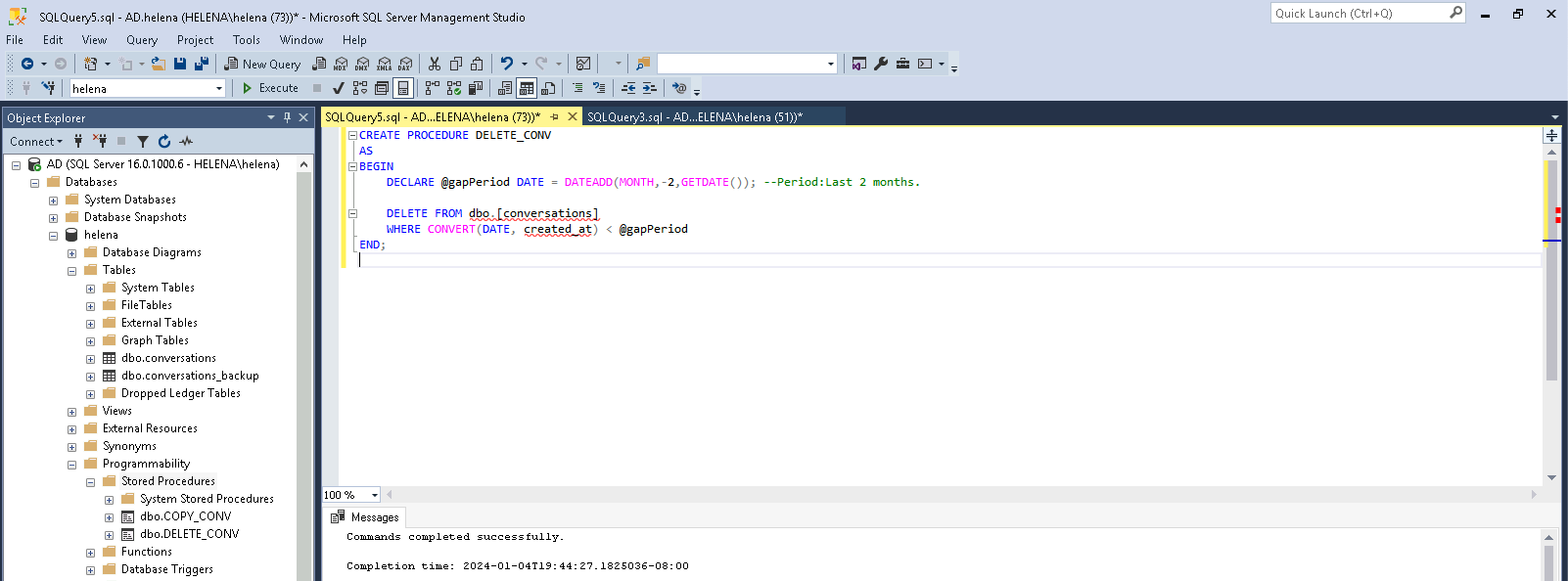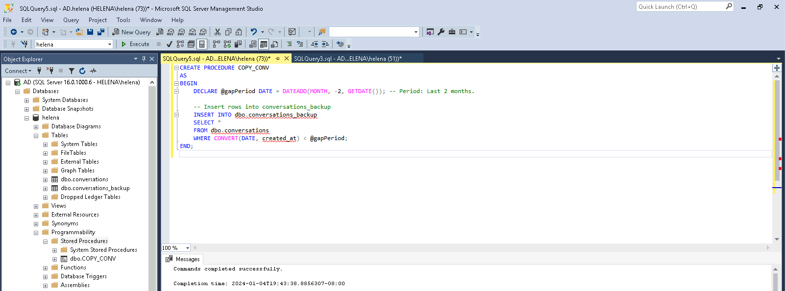 First, we create a stored procedure to copy the data older than 2 month to the backup table