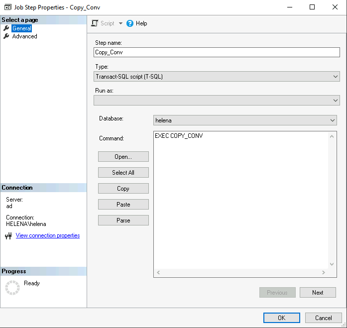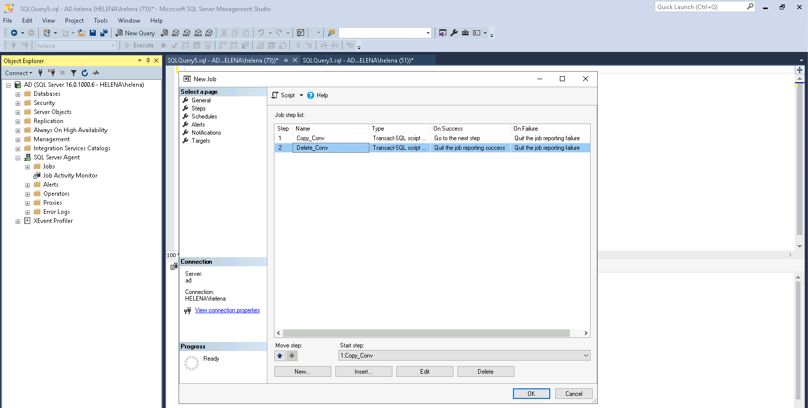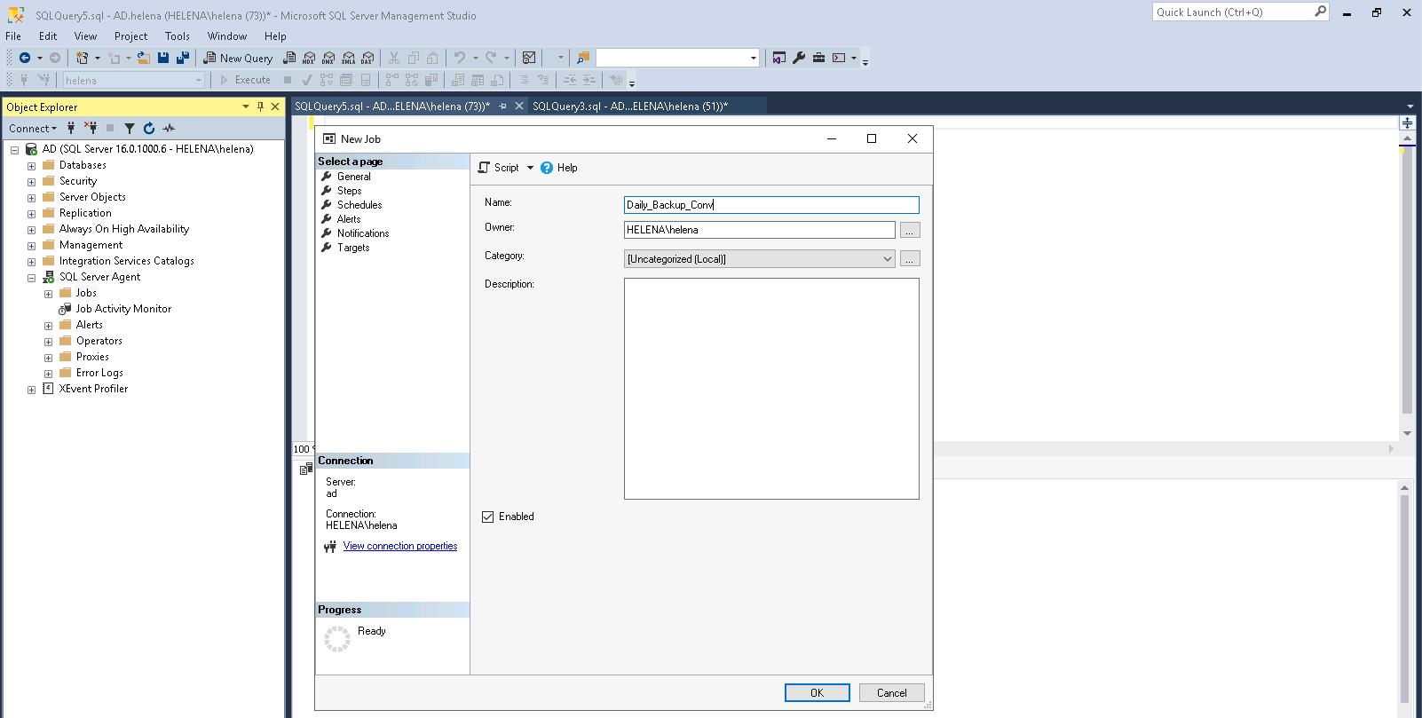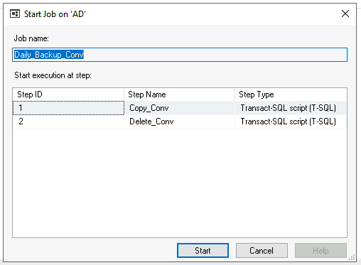 Now we create a Job to execute 2 procedures created above, we name the Job Daily_Backup_Conv