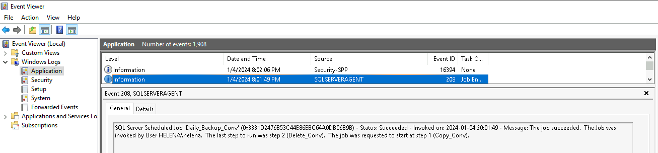 To finsih things up, i like to log the operation onto Event Viewer everytime the job executes