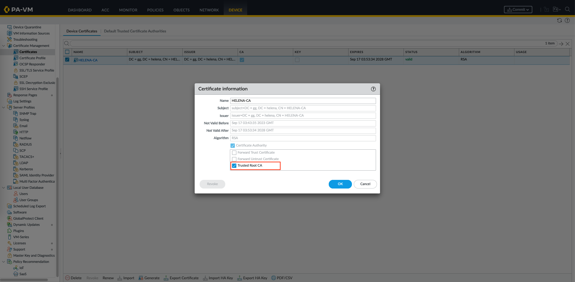 Import the Certificate to Palo Alto