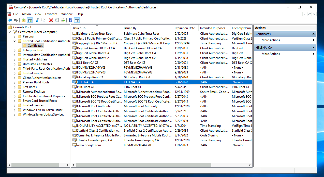 And then select “Trusted Root CA”