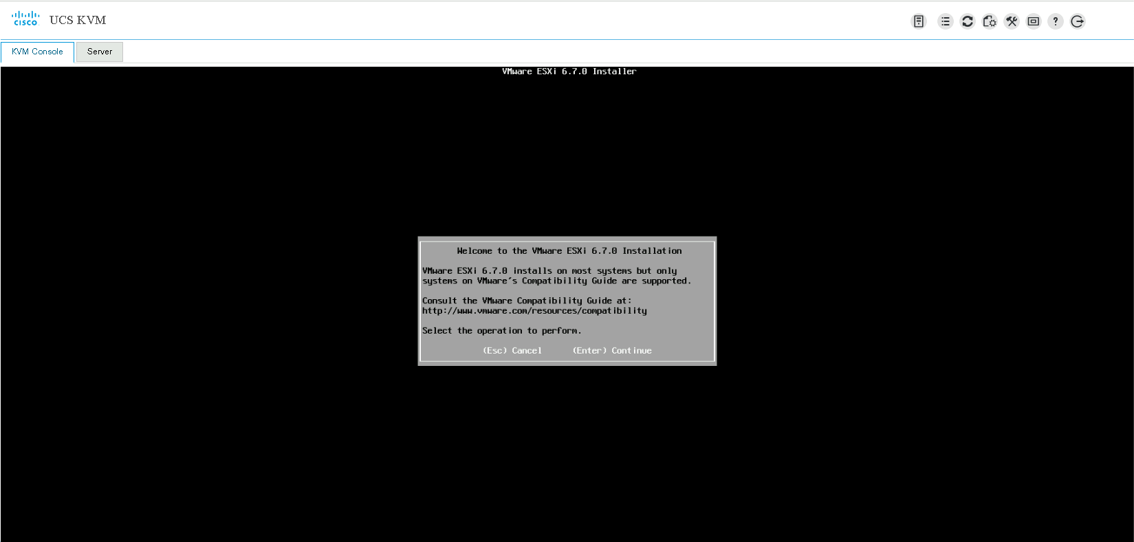 To install or upgrade an ESXi firmware through UCS Manager with ISO installer, launch UCS Manager and select ‘KVM Console’ on the target host