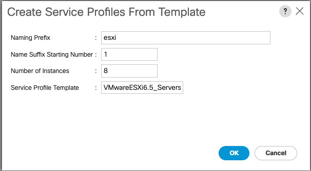 Give it a name, a sequence number, and number of instances. Here we’ll service templates for 8 esxi servers. Select the base template that will be used, which in this case will be VMware ESXi 6.5