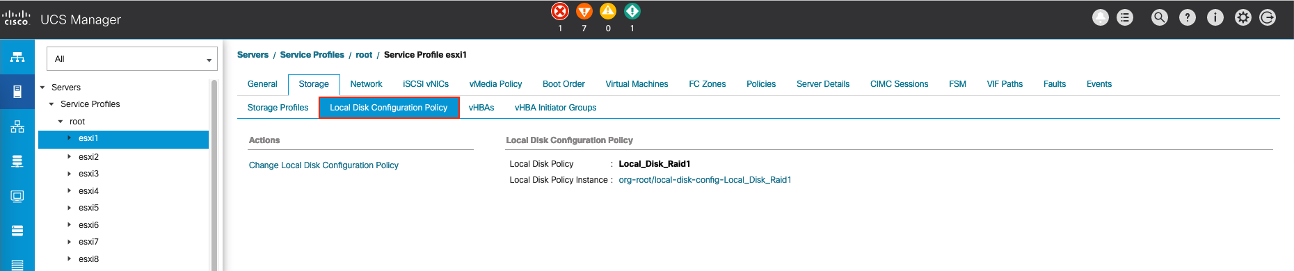 Click on the newly created template then select Change Local Disk Configuration Policy