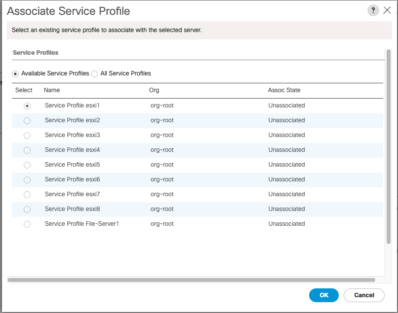 Go to Equipments, select the Server and click Associate Service Profile