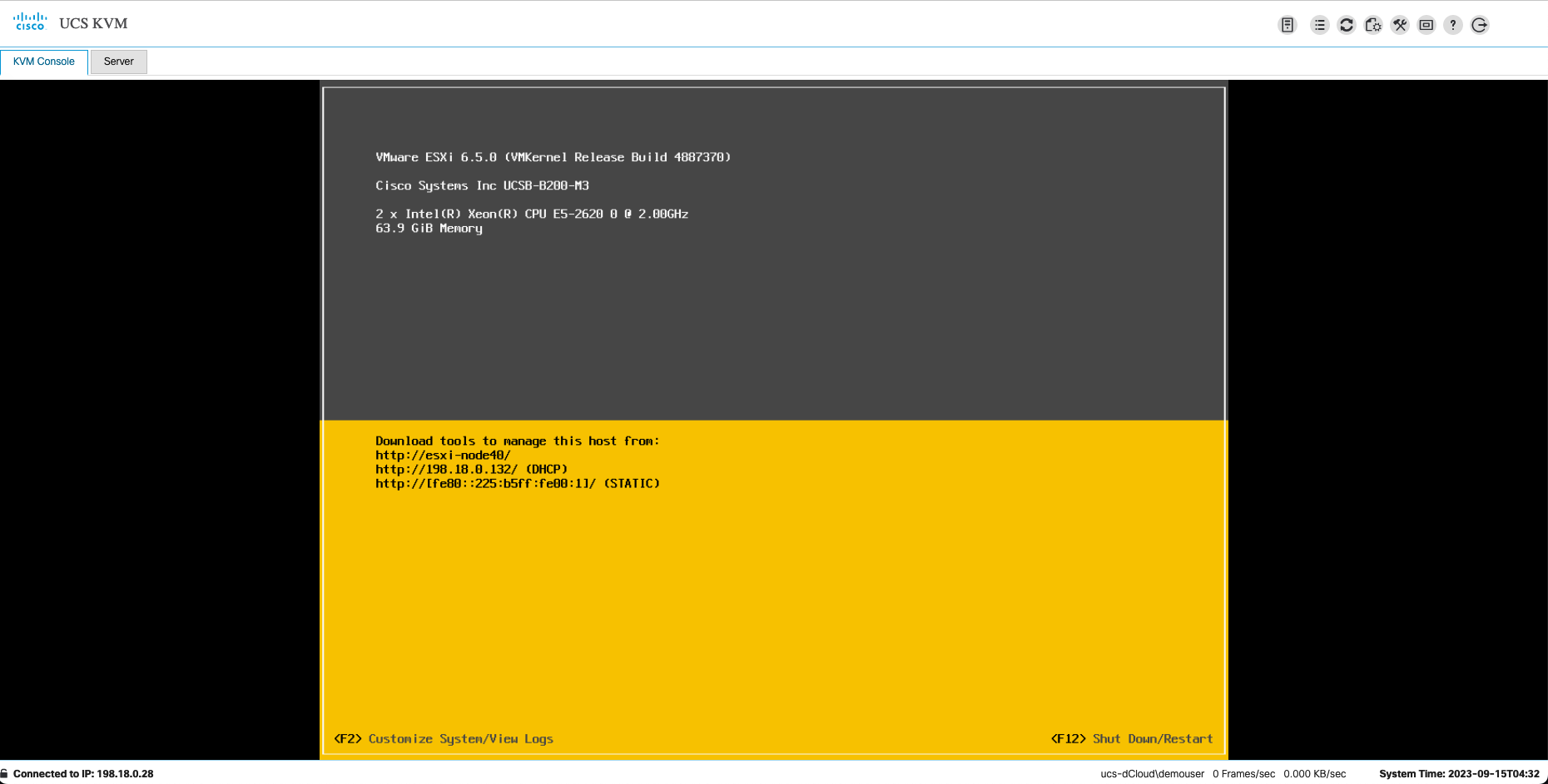 Access the IP shown in KVM Console, and the ESXi should show up