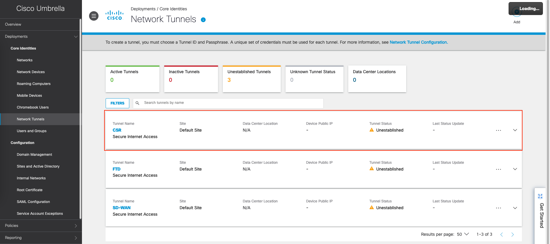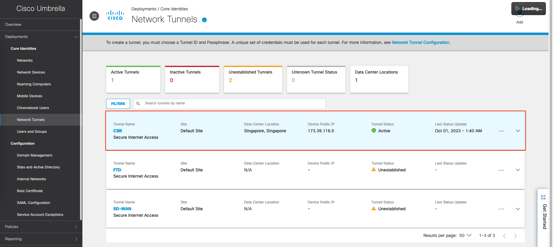 Configuring Network Tunnel on Umbrella