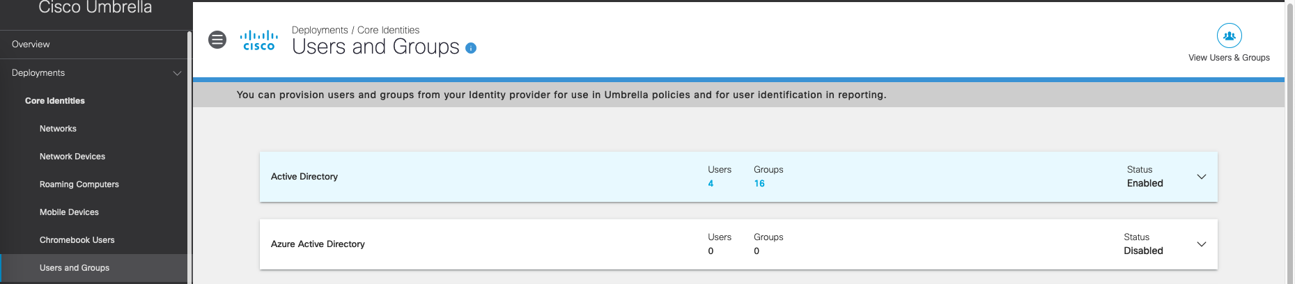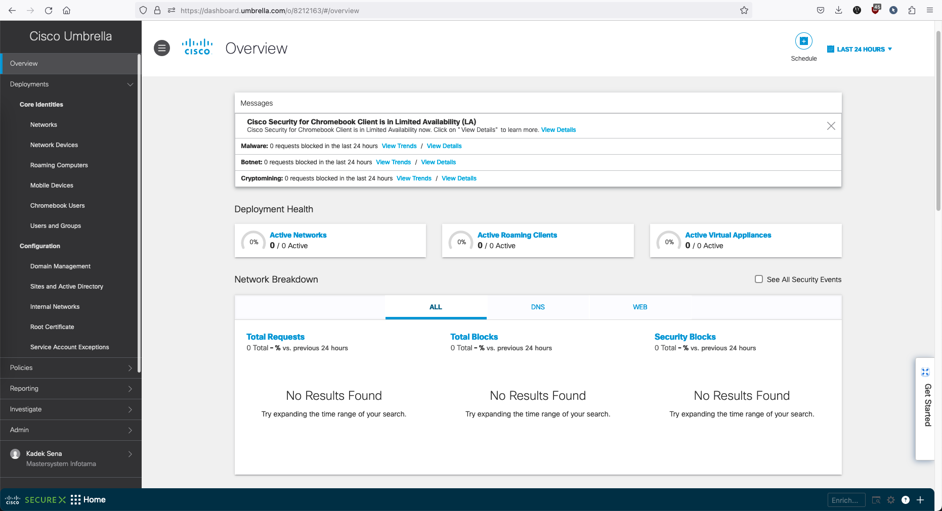 Open the Cisco Umbrella on dashboard.umbrella.com