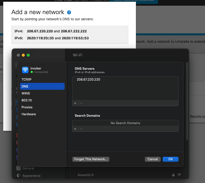 Afrer that just configure Umbrella’s OpenDNS as the DNS Server on the clients