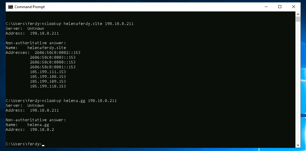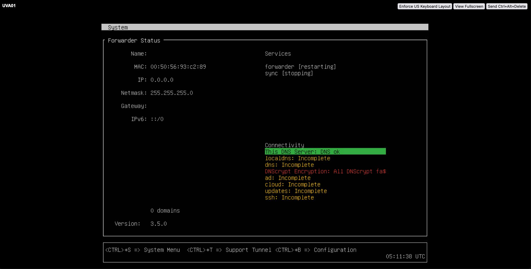 Doing a nslookup to the internet and internal domain on the VA’s IP Address shows that the DNS Server is able to resolve the request