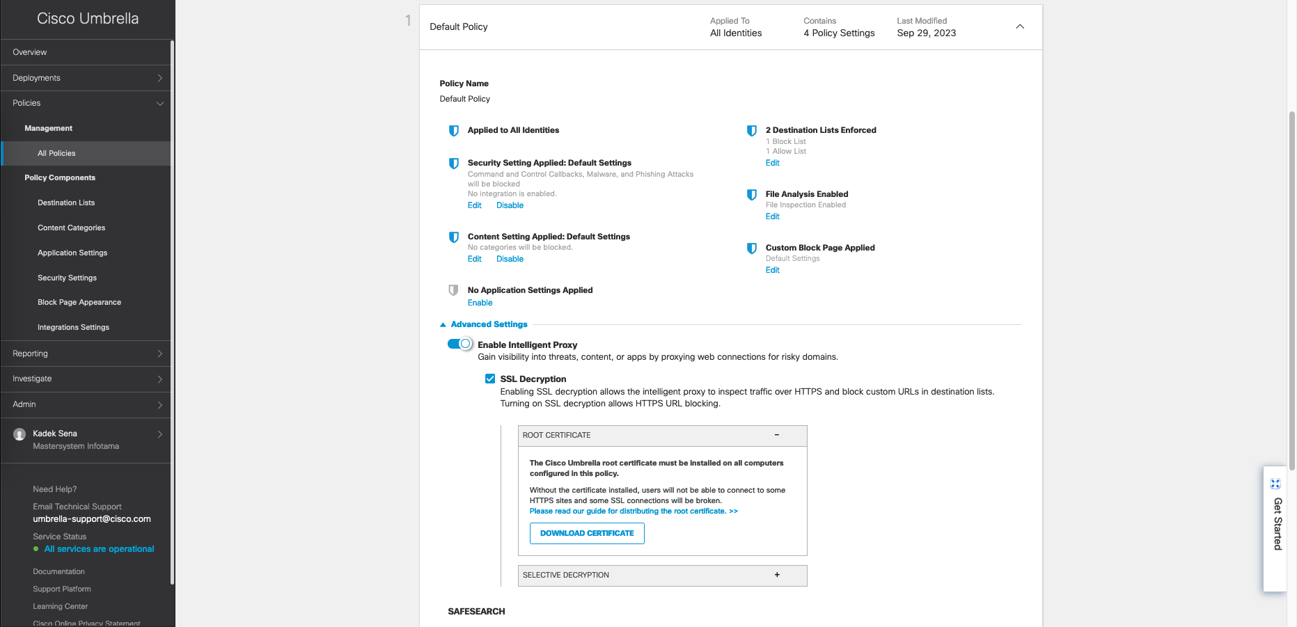 To enable Intelligent Proxy, on Polices » All Policies, enable Intelligent Proxy on Advanced Settings