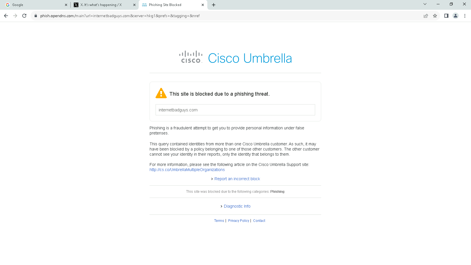 Now if the client trying to access an unsafe website, umbrella will block it
