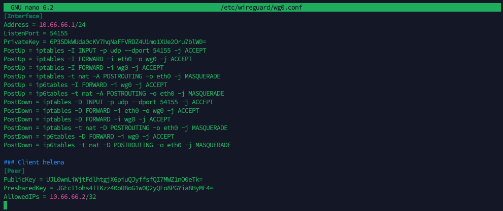 nano /etc/wireguard/wg0.conf