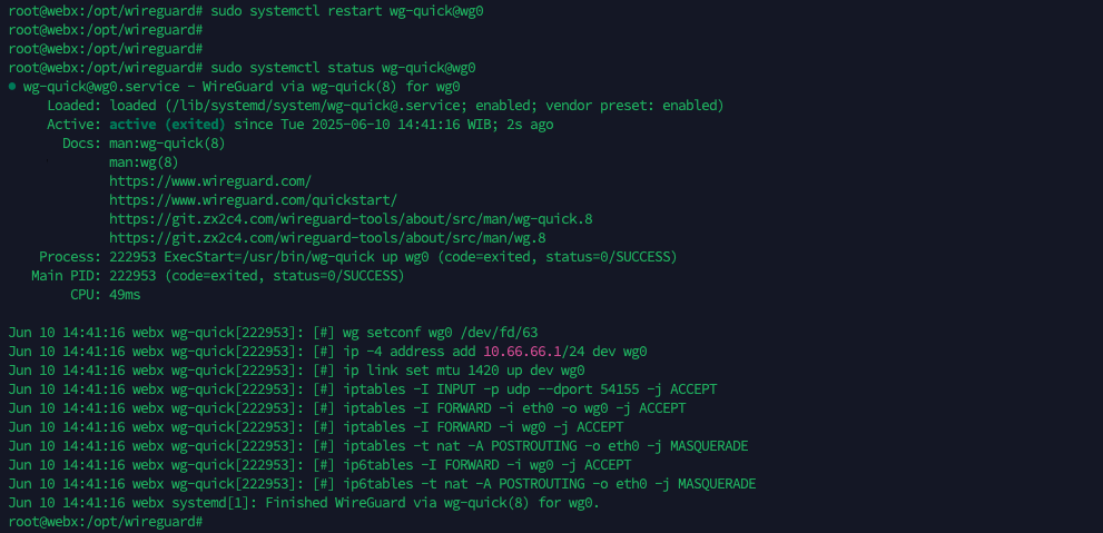 systemctl restart wg-quick@wg0