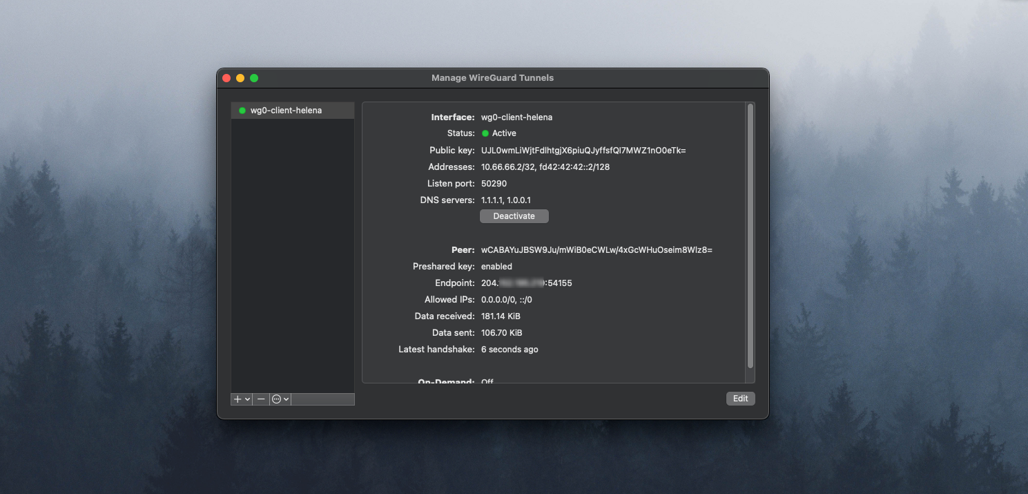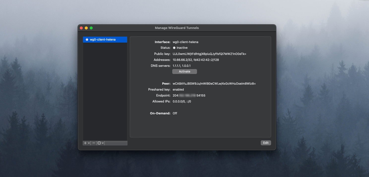 Install WireGuard Client and import the config