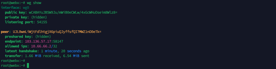 On the Server, run “wg show” to see VPN connections